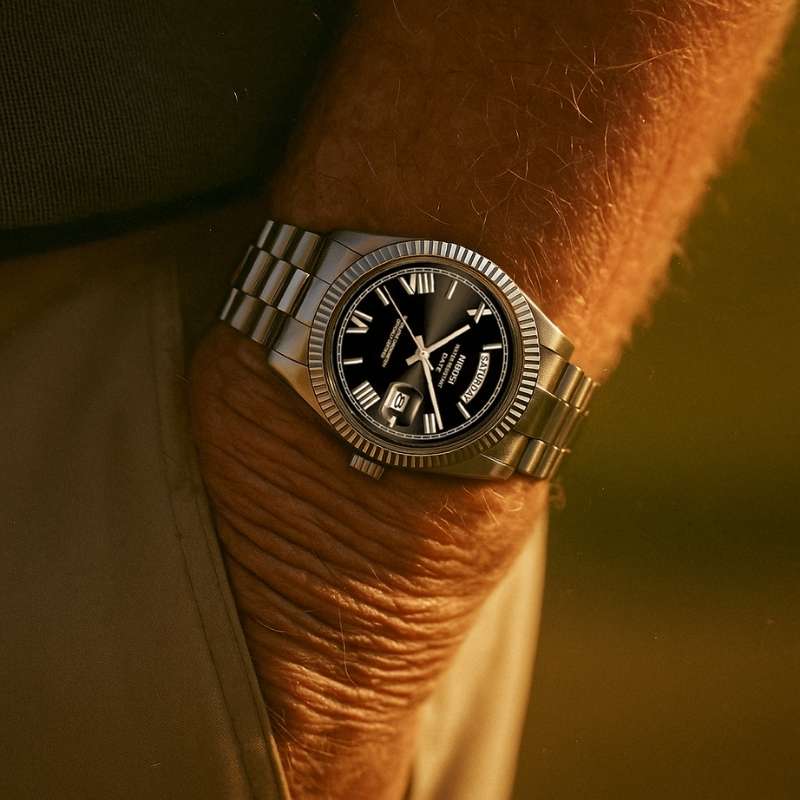 Il Consigliere combina presenza ed eleganza in un design pensato per trasmettere fiducia e status. Con cassa robusta, quadrante con doppia data e cinturino metallico a maglie larghe, è la scelta perfetta per chi apprezza la sofisticazione senza eccessi.