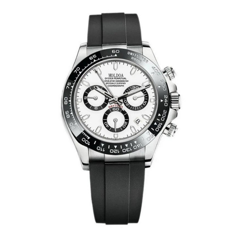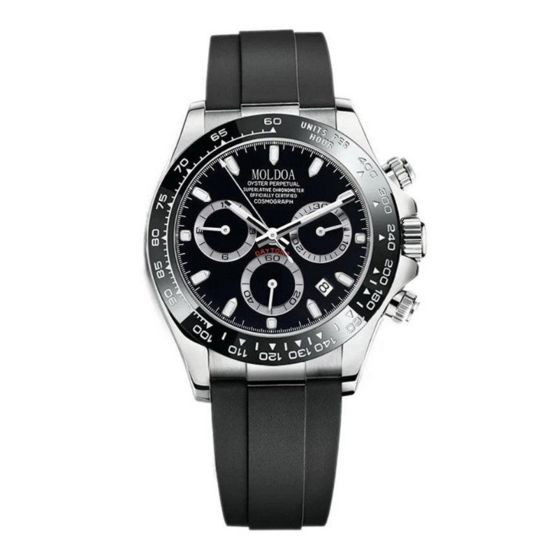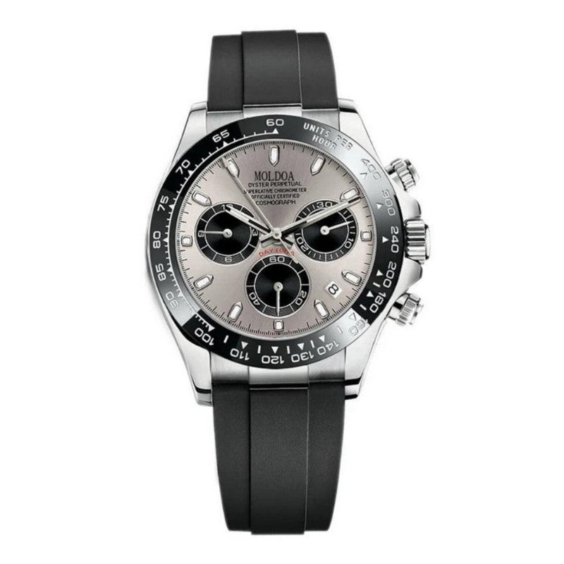 Il Nero Tempo combina linee classiche con dettagli audaci per chi cerca stile e prestazioni nella vita quotidiana. Il suo quadrante ad alto contrasto con cronografi funzionali garantisce una lettura precisa e un look sofisticato, perfetto per ogni occasione.